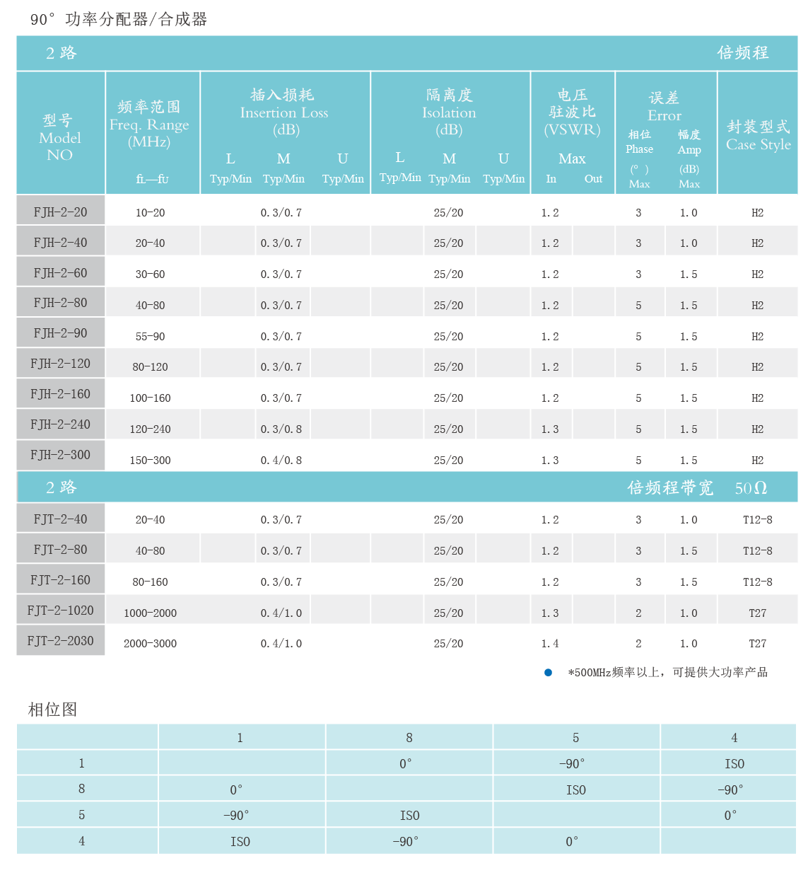 90°功率分配器/合成器